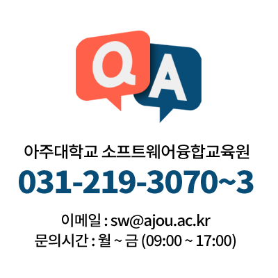 이메일: sw@ajou.ac.kr 문의시간: 월 ~ 금(09:00 ~ 17:00)
